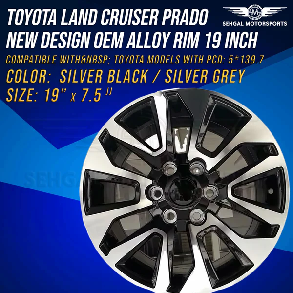 Upgrade your SUV with this premium 19-inch OEM-style alloy rim, designed specifically for the Land Cruiser Prado. Featuring a sleek new design, this rim blends luxury with ruggedness, making it ideal for both urban driving and off-road adventures. Crafted from high-quality aluminum alloy, it offers excellent strength, reduced weight, and enhanced performance. The rim is engineered to perfectly match the original specifications, ensuring seamless installation and compatibility with the existing bolt pattern and offset of the Prado. The stylish finish complements the vehicle’s bold profile, delivering both aesthetic appeal and functional durability. Whether you’re replacing a damaged wheel or looking to refresh your SUV’s look, this alloy rim provides an excellent OEM-grade solution with long-lasting performance.